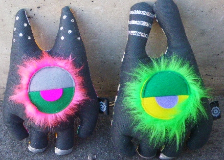 ネコみたいな耳の子は目にピンクのファー、うさぎみたいな耳の子はグリーンで、それぞれ蛍光っぽい色です。
