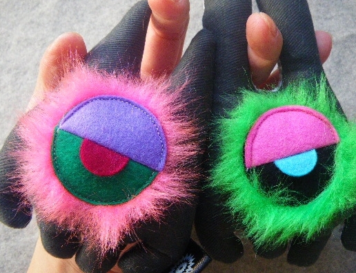 目のフェルトも、色んな色で組み合わせていますので、楽しんで下さいね。